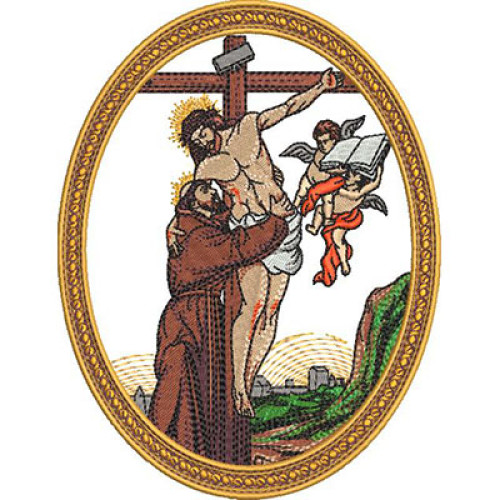 Tags: embroidery, design, saint, francis, embracing, the, crucified, christ., march, 2026