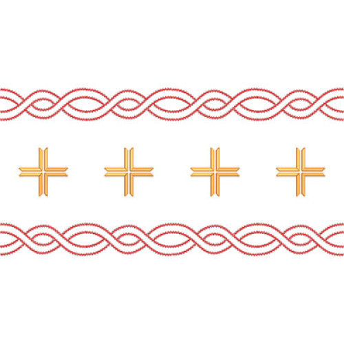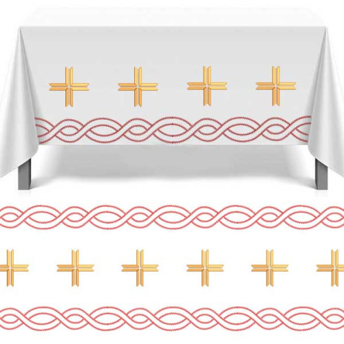 Este conjunto consta de 7 diseños que, al bordarse secuencialmente, forman bordes continuos para manteles de altar.