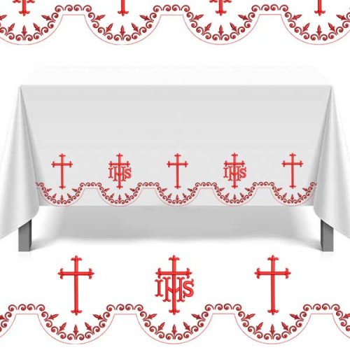 Este conjunto consta de 8 diseños que, al bordarse secuencialmente, forman bordes continuos para manteles de altar, con diseños separados para el acabado.